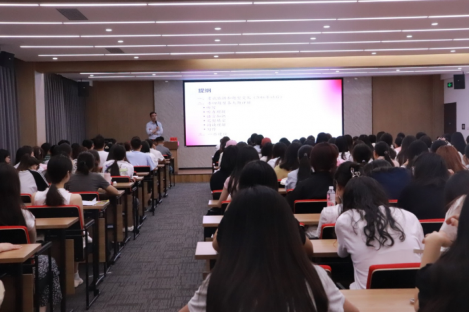为推动人工智能在语言学习和测试领域的应用与发展,帮助员工更好地了解新时代英语专业四、八级考试,5月18日,外 国语公司特邀请上海外国语大学潘鸣威教授在德正楼一楼学术报告厅举办《当语言测试与人工智能相遇——机遇与挑战》专题讲座。讲座由公司党总支书记闫静主持,公司近200名员工参加了讲座,报告厅座无虚席。